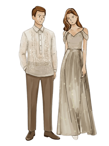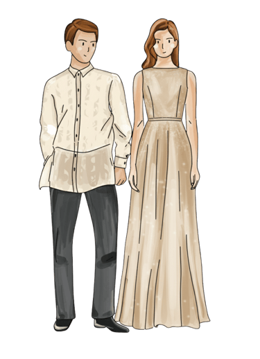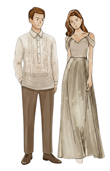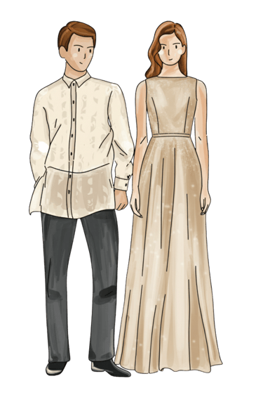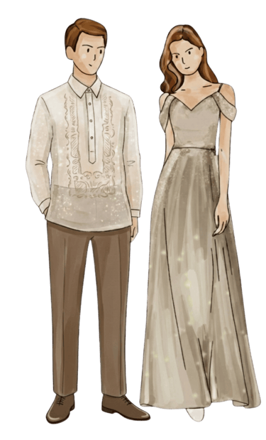 Male Guests: Barong Tagalog or a long-sleeved formal top paired with dress pants.