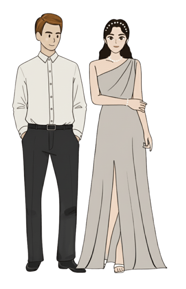 To honor both the elegance of the celebration and the church’s guidelines, we kindly ask guests to avoid neon or bright colors, wearing of casual attire such as polo shirts, shorts, jeans, sandals, or rubber shoes, as well as sleeveless, backless, or overly revealing dresses.